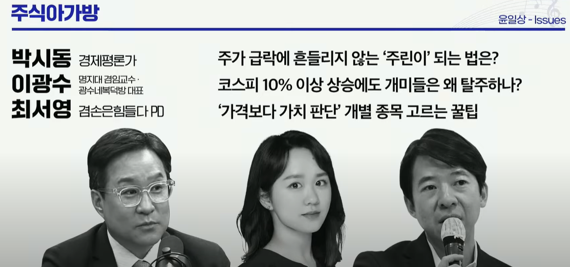 - 이재명 대통령의 발언: 이재명 대통령이 미국 방문 시 외국인 투자자들에게 한국 주식에 투자하라고 권유하며, 내심으로는 한국 국민들이 먼저 투자하기를 바란다고 말했다.