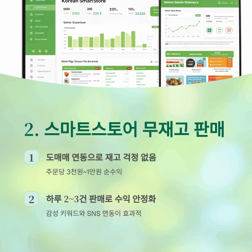 스마트스토어는 온라인으로 물건을 판매할 수 있는 플랫폼이에요. 위탁 판매 방식으로 시작하면 초기 재고 부담이 적고, 판매가 이루어질 때 수익을 얻을 수 있어요. 하루에 2~3개의 판매가 이루어지면 안정적인 수익을 기대할 수 있죠.