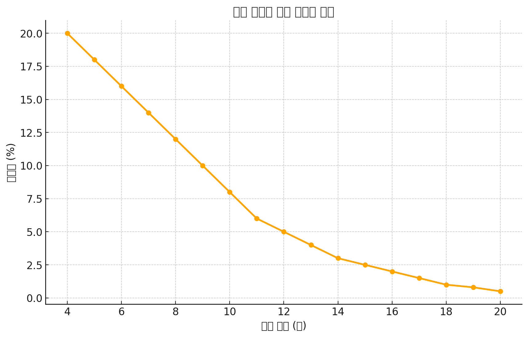 - 12주 이후 → 급격히 안정화 (5% 미만)